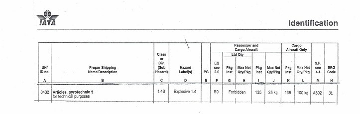 | IDENTIFICATION NUMBER: | UN 0432 | LABEL: | 1.4S |