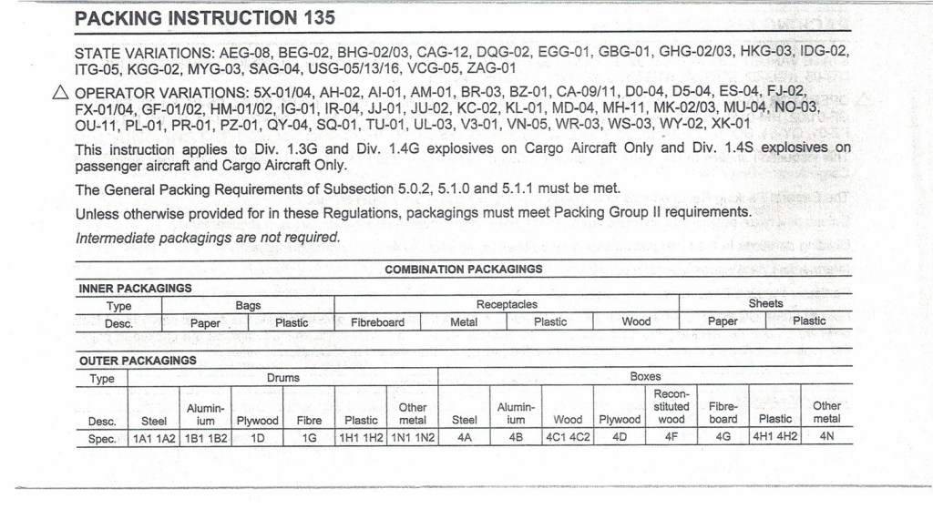 Write the number of the applicable packing instruction, “135”.